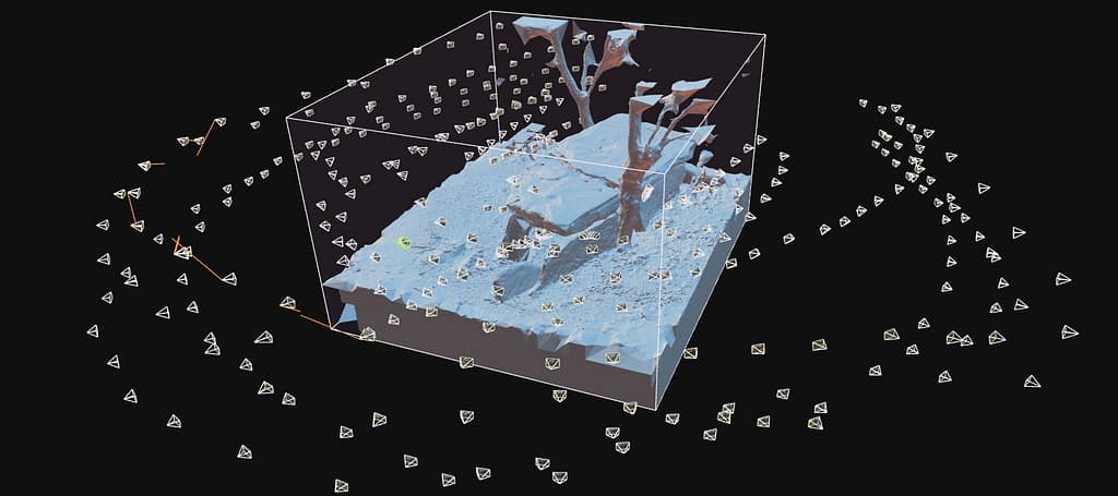 Ci- dessus : Prise de vue et aperçu des clichés assemblés en vue d’un assemblage photogrammétrique.